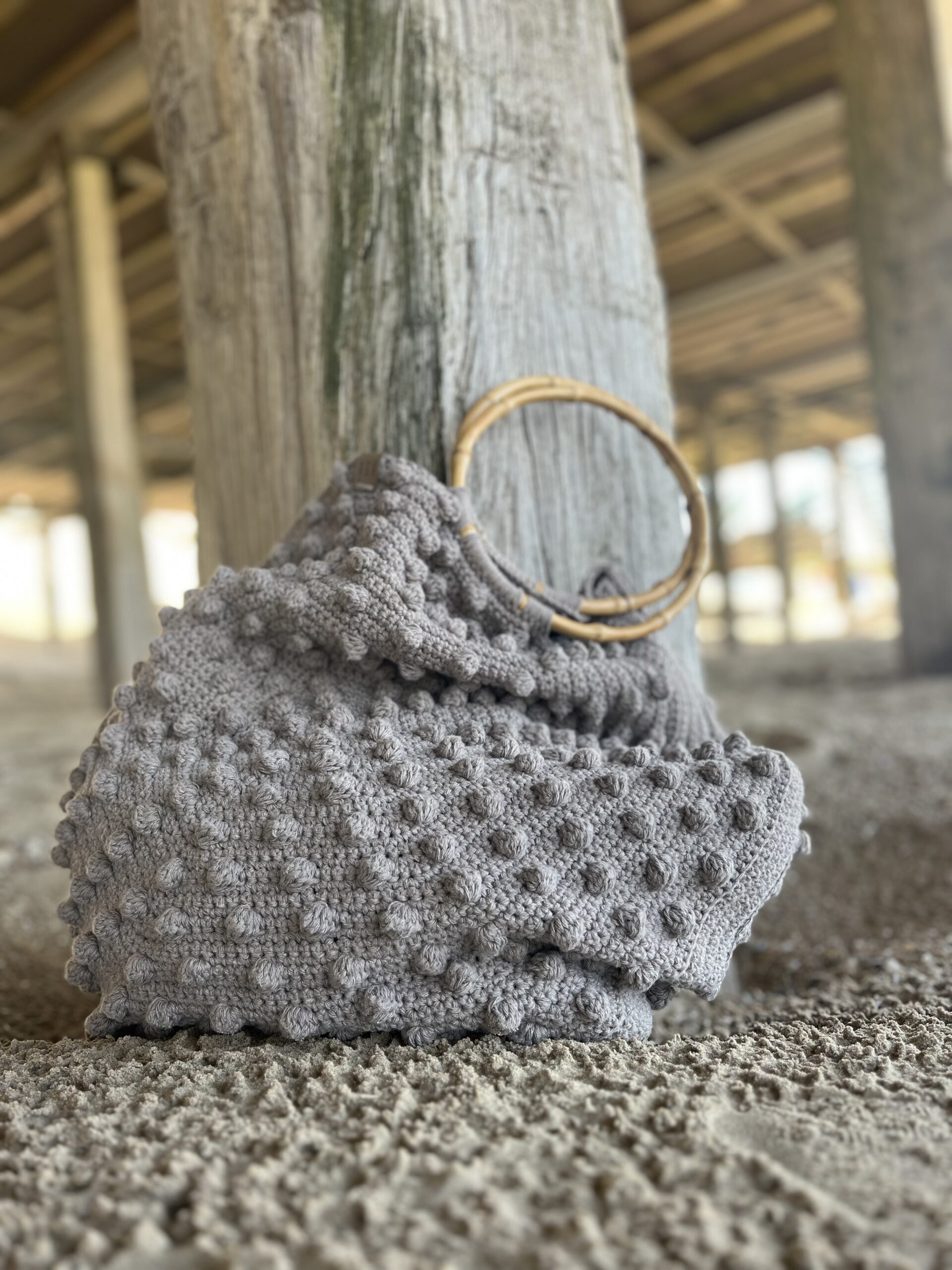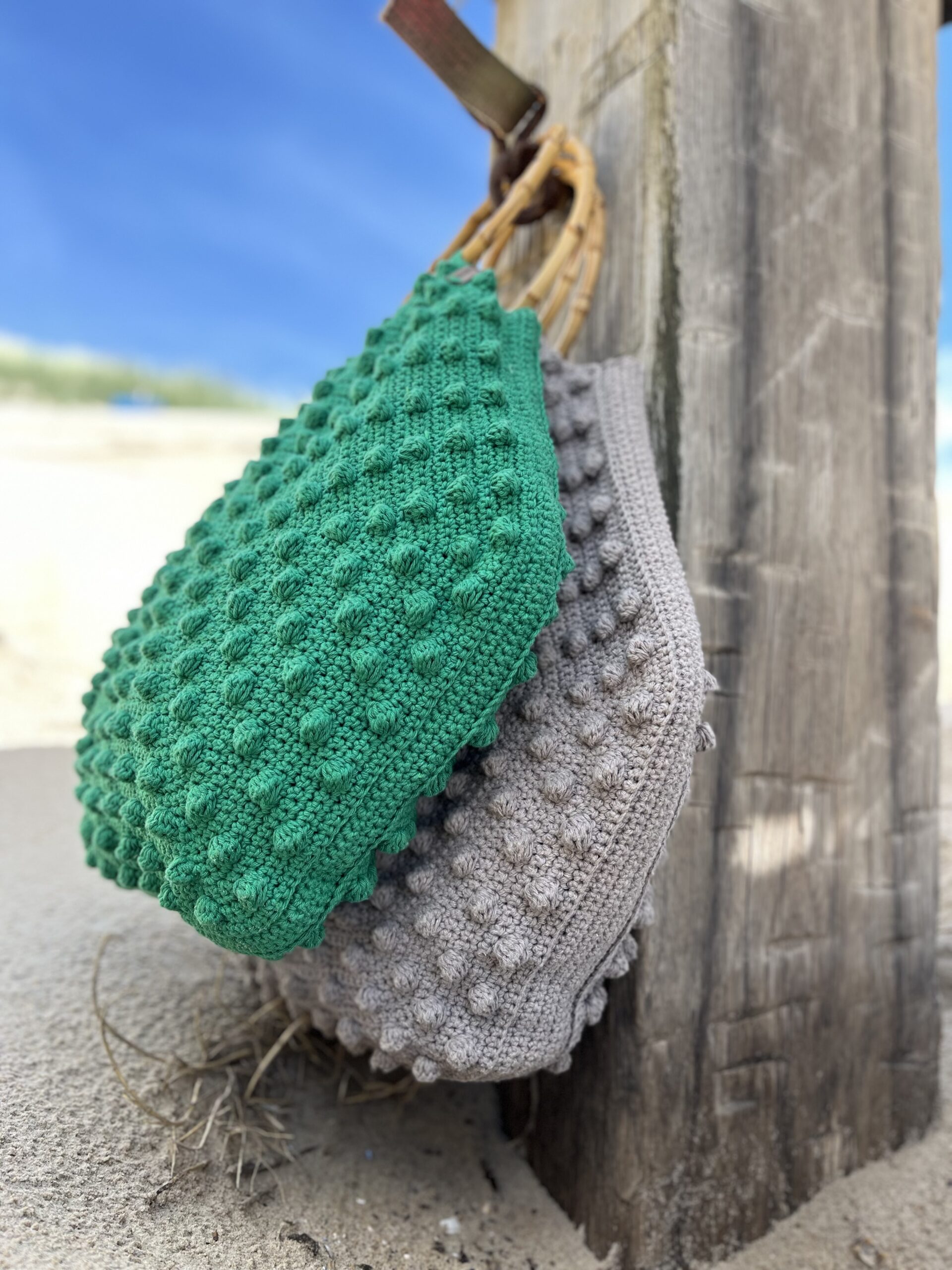 Ik ben dol op het verwerken van de pomponsteek in mijn ontwerpen – en deze tas is daar geen uitzondering op. De combinatie van geometrische vormen en subtiele textuur maakt dit ontwerp echt uniek.