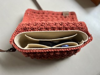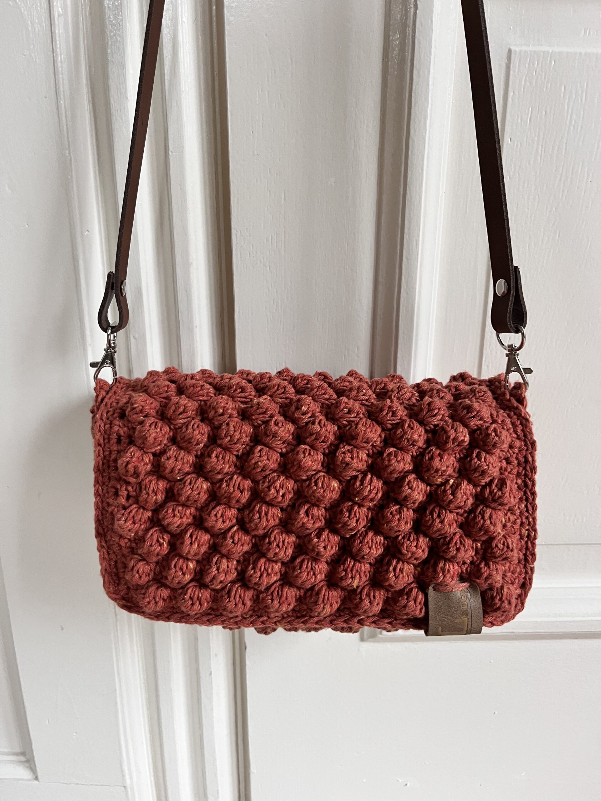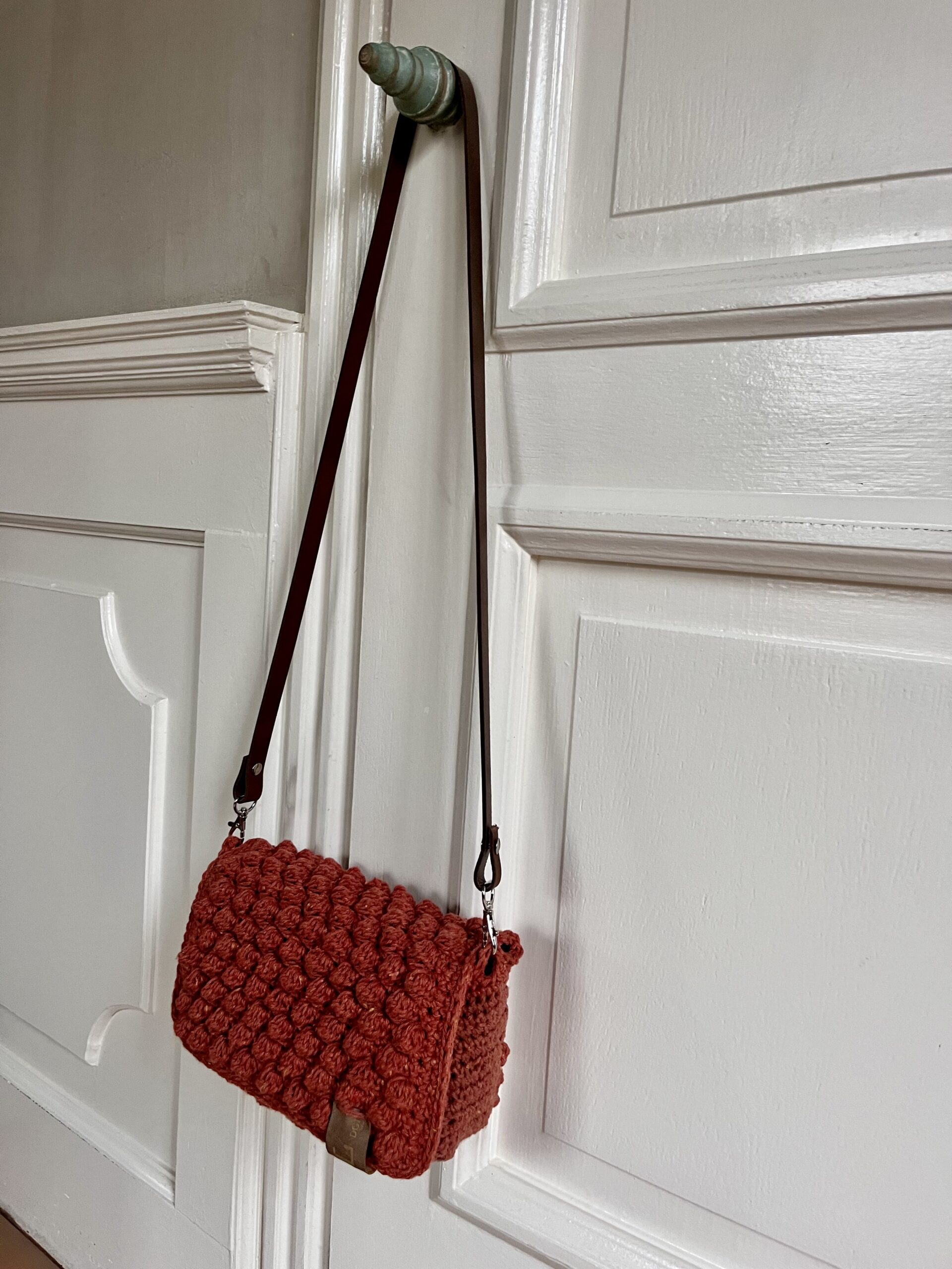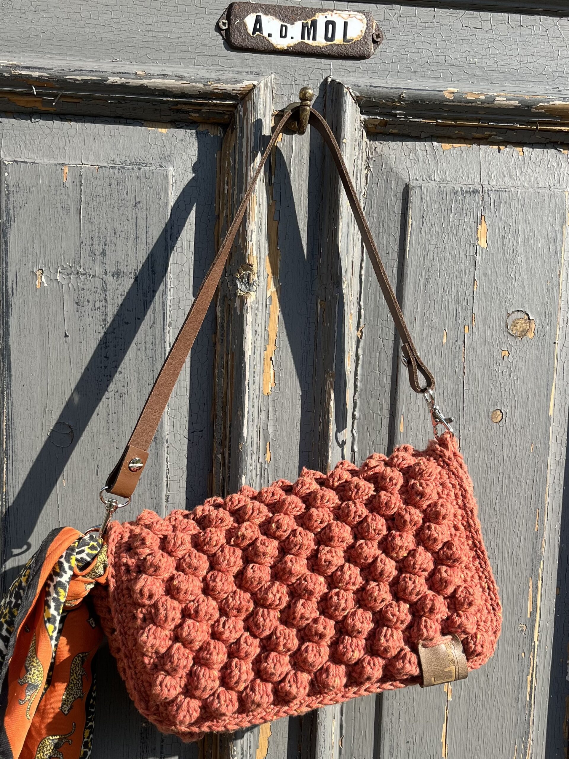De afgebeelde tas is gehaakt met de kleur ‘Brick’