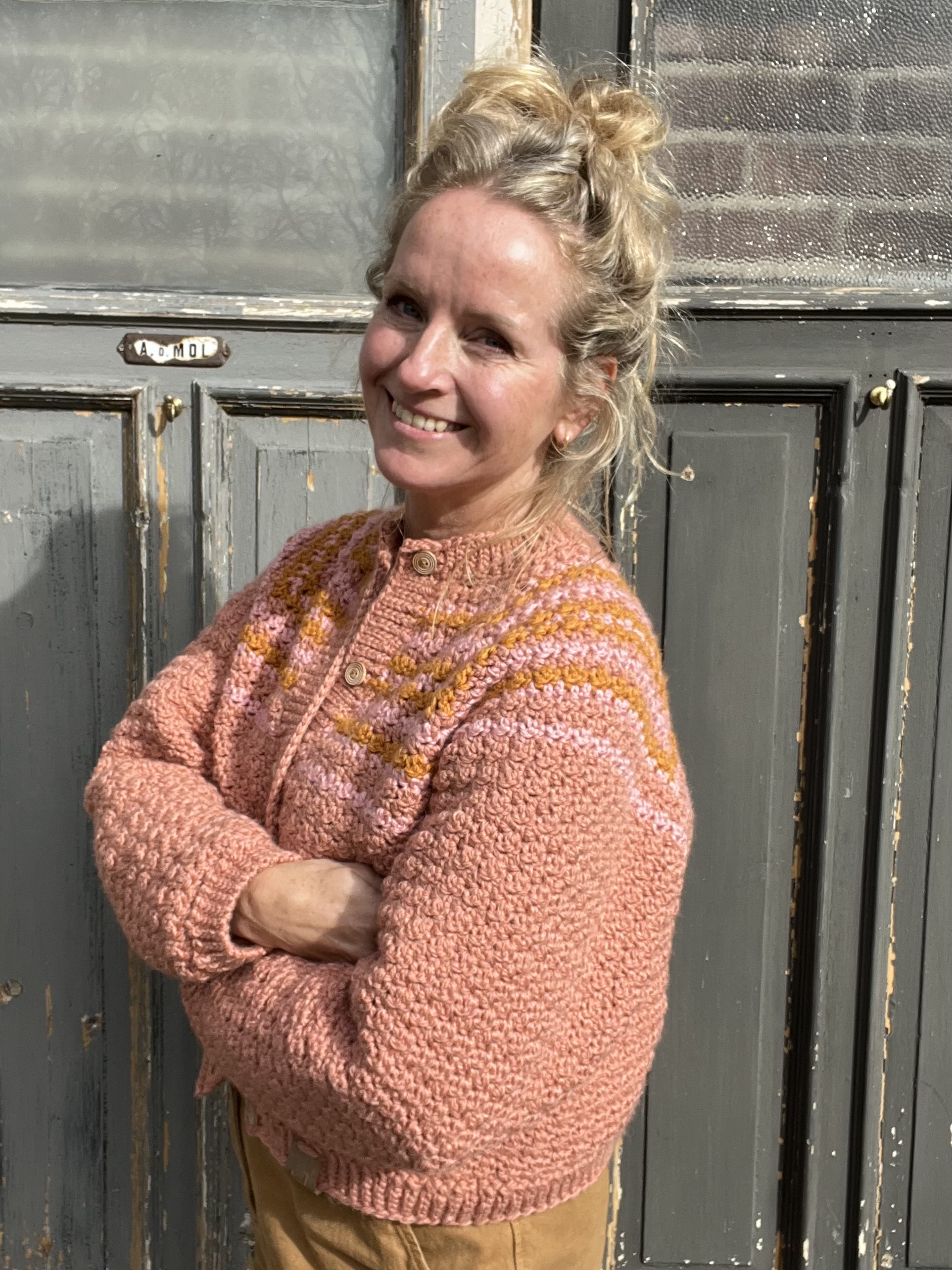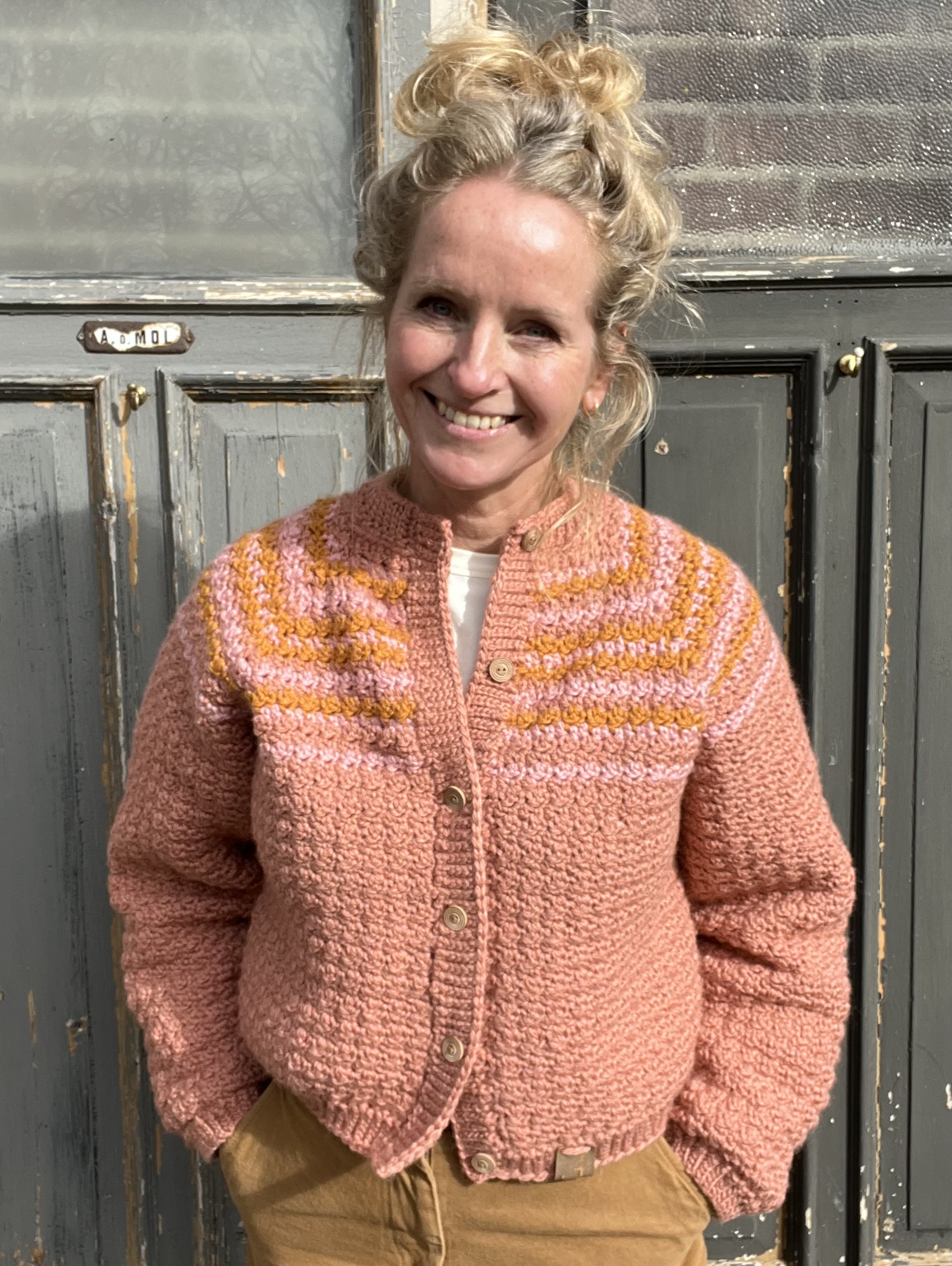 Soms ontstaat er magie onder de hand van de klant. Priskilla haakte het Lief Vestje met Country Wool en werkte het af met een stoerder boord dan het origineel. Ik was opslag verliefd. Hoe leuk om naast het origineel, een iets stoerdere variant te kunnen aanbieden. En dus zijn we -uiteraard met goedkeuring van Priskilla- aan de slag gegaan met een aanvulling op het patroon. Stoer en toch lief.