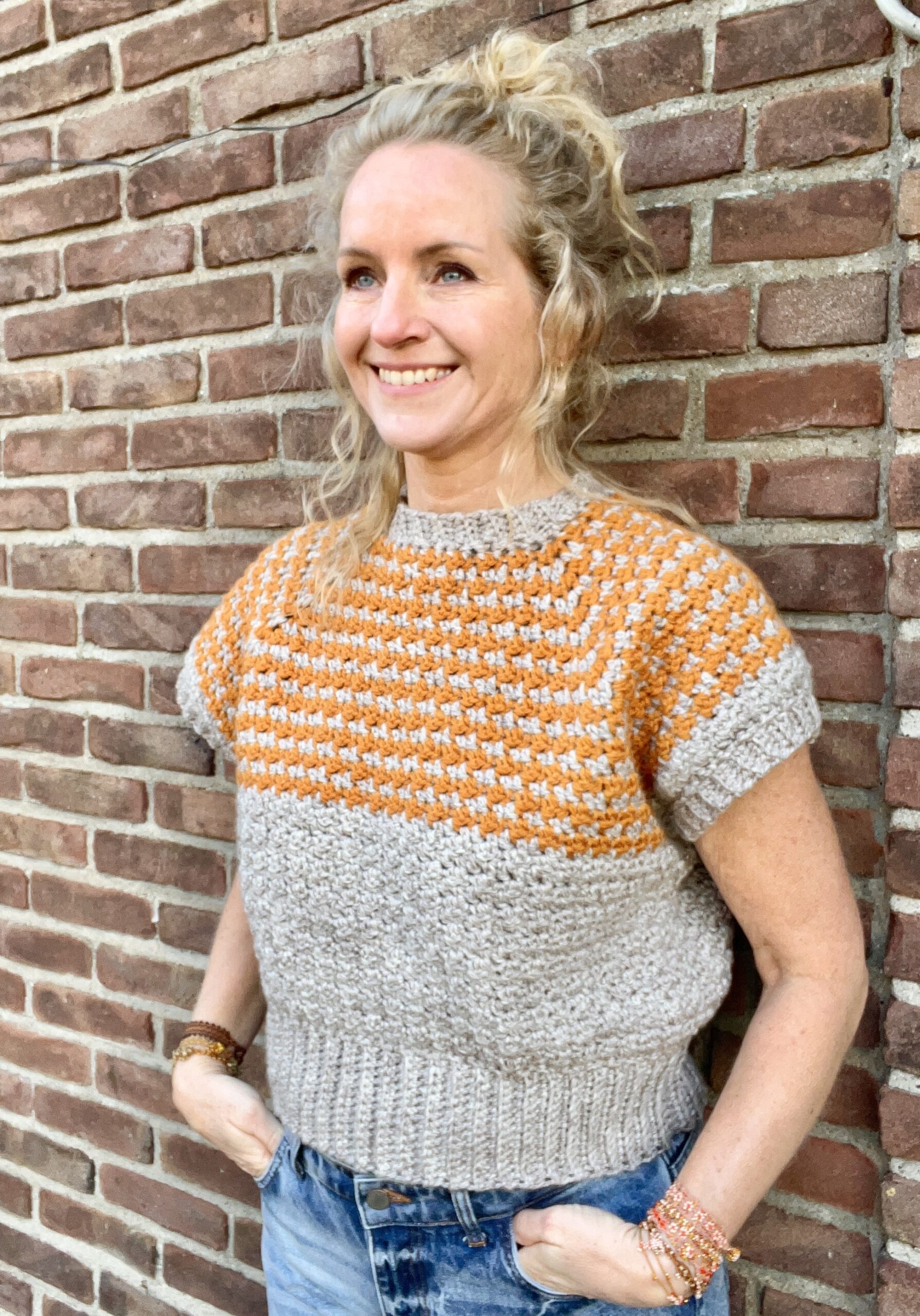 Soms ontstaat er uit één ontwerp iets zó leuks, dat je het móét doorvertalen. Dit gehaakte truitje met korte mouwen is een waanzinnig toffe spin-off van het populaire jurk-patroon. Het haakt net zo fijn, maar heeft een frisse, speelse uitstraling die perfect is voor het voorjaar en de zomer. Én, misschien nog wel het allerleukste; ze is aan 2 kanten te dragen!